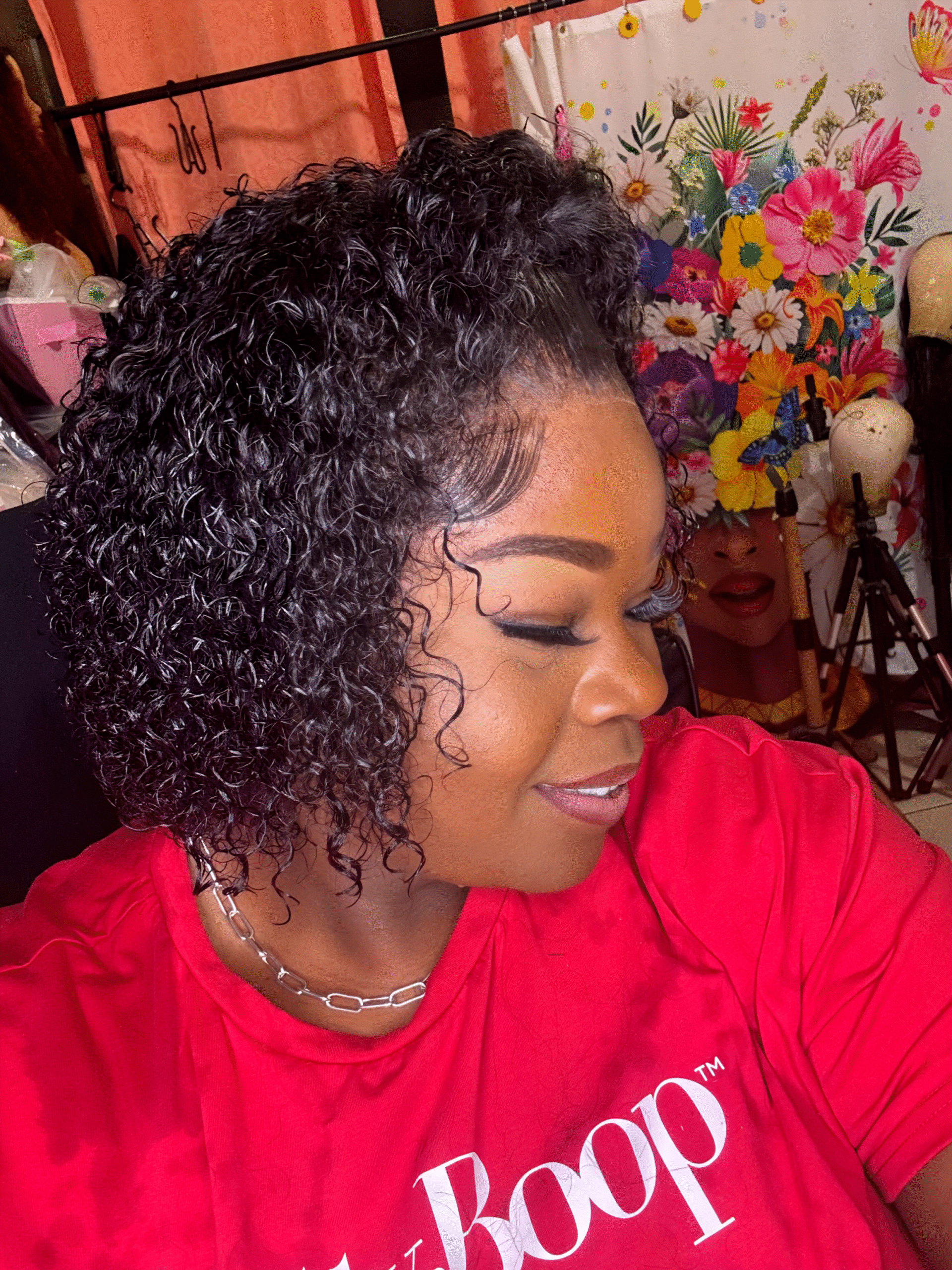 Crowned by Keisha Transparent 13×4 FULL Lace Frontal Jerry Curl Bob Wig lace is attached